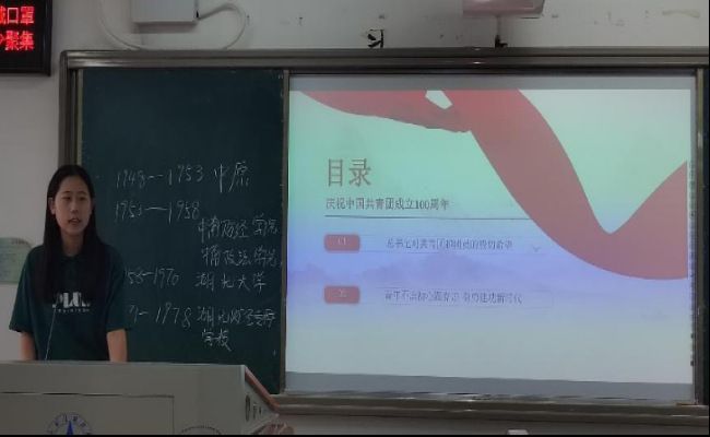 活动伊始,团支书李嫚就习近平总书记在共青团成立100周年庆祝大会上的讲话做具体讲解。通过PPT的放映讲解,团支部成员对讲话精神进行了深入的学习。